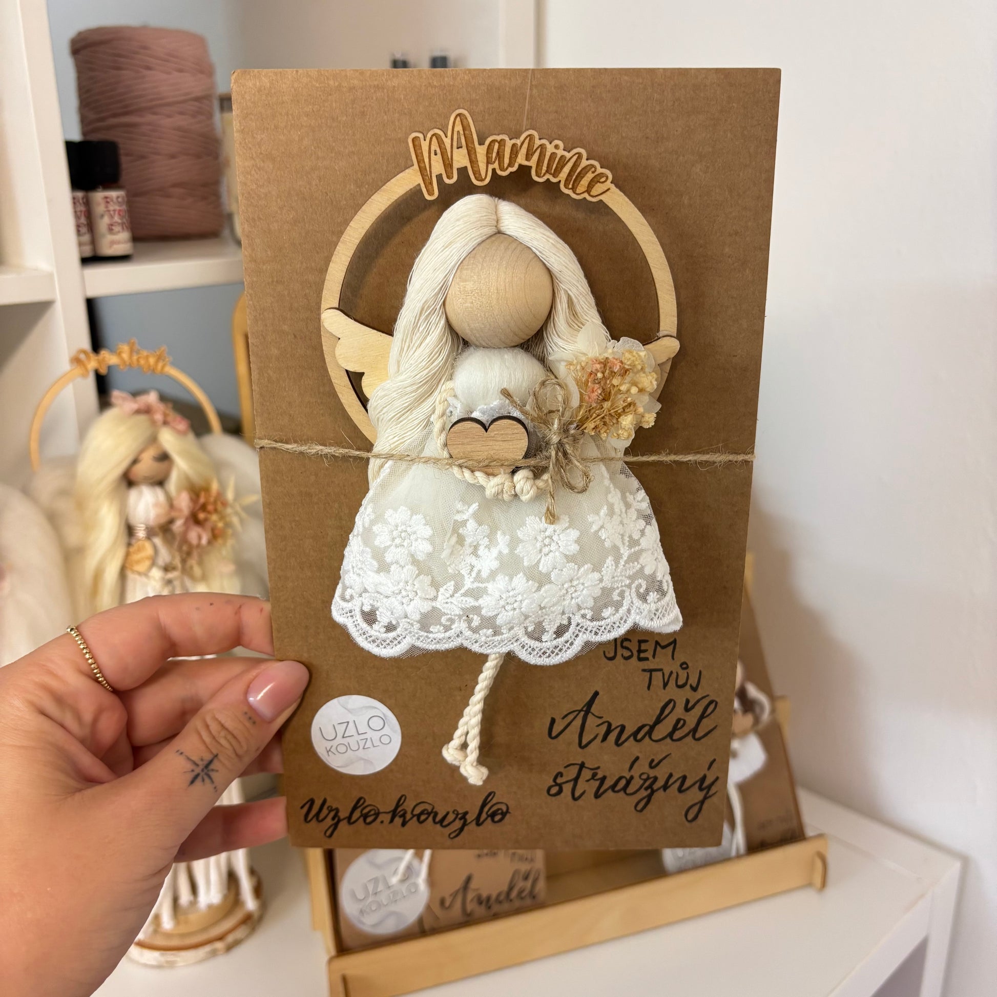 Andělka věnovaná Mamince s viskózovými vlásky a tylovou sukénkou.