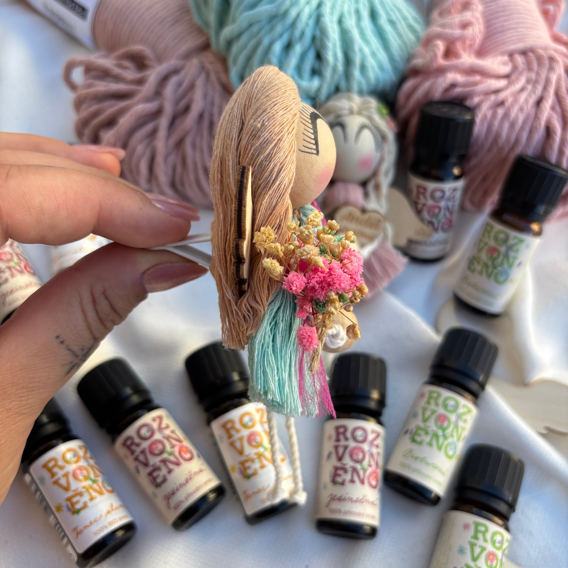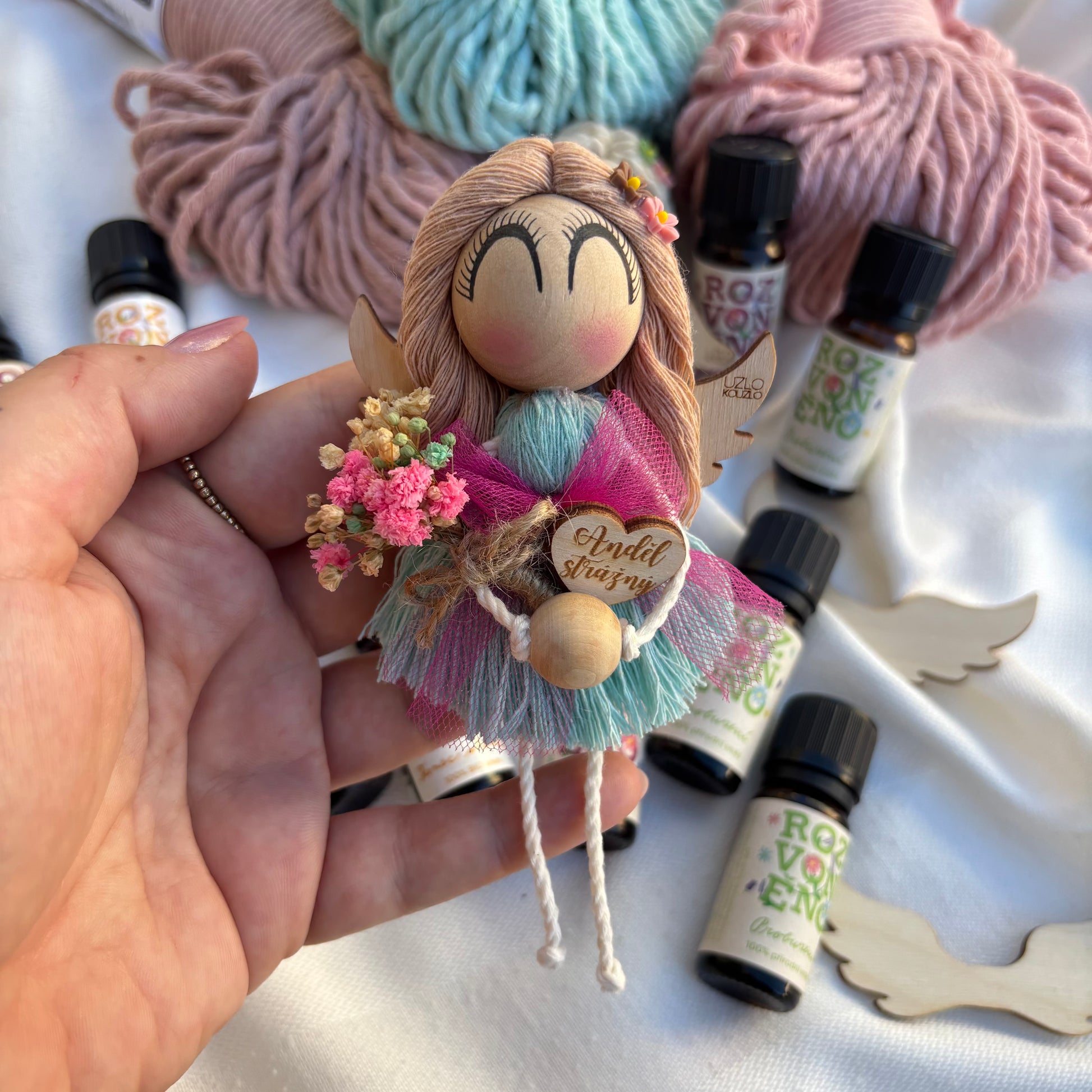 Váš osobní ochránce cest – originální macramé andělka s vůní. Díky speciálnímu klipu ji snadno připevníte do ventilační mřížky v autě, kde se stane něžným společníkem i praktickým aromadifuzérem. Stačí pár kapek 100% éterického oleje a vaše jízda se promění v harmonický a voňavý zážitek.